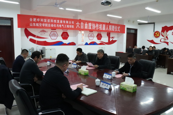2025-12-0812月4日,我校自动化与电气工程学院在11号教学楼313会议室举行合肥中科深谷科技发展有限公司六自由度协作机器人捐赠仪式。学校党委委员、副校长刘宝民出席仪式并致辞,合作发展处处长赵书杰人代表学校接受捐赠并向企业颁发捐赠证书。合肥中科深谷科技发展有限公司副总经理潘超、山东分部负责人周健春,山东大学机器人研究中心主任助理李国梁出席仪式,我校自动化与电气工程学院负责人及教师代表参加仪式。