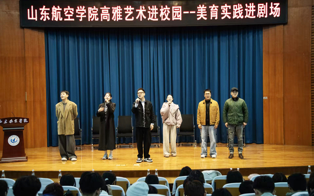 2026-04-033月31日上午,由我校学生工作处(武装部)、艺术学院和滨州保利大剧院管理有限公司联合主办的“高雅艺术进校园·美育实践进剧场”——音乐剧《南孔》山东航空学院艺术交流活动在明德报告厅举行。学生工作处、艺术学院师生代表及全校近300名师生共同参与了这场跨越千年的文化之约。