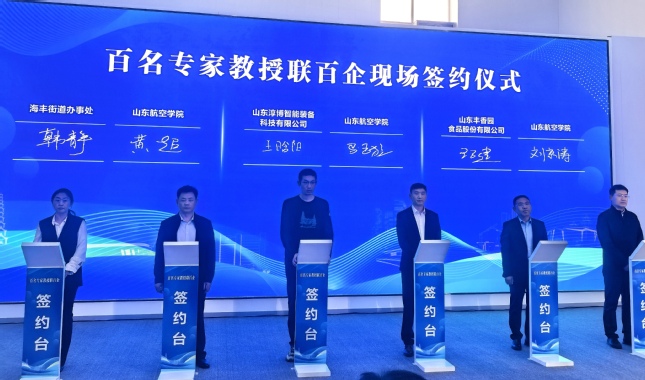 在活动启动仪式上,林晓金代表学校作题为《智汇滨州沃土赋能产业升级书写山东航空学院服务地方新篇章》的路演报告,全面介绍了学校办学特色、学科优势、科研成果及服务地方发展情况,并表示学校将持续发挥党外知识分子智力密集优势,搭建常态化产学研对接平台,为地方产业升级提供人才与科技支撑。我校2名专家教授作成果推介,同时,6个二级学院和专家团队与无棣县企业、街道现场签署合作协议。
